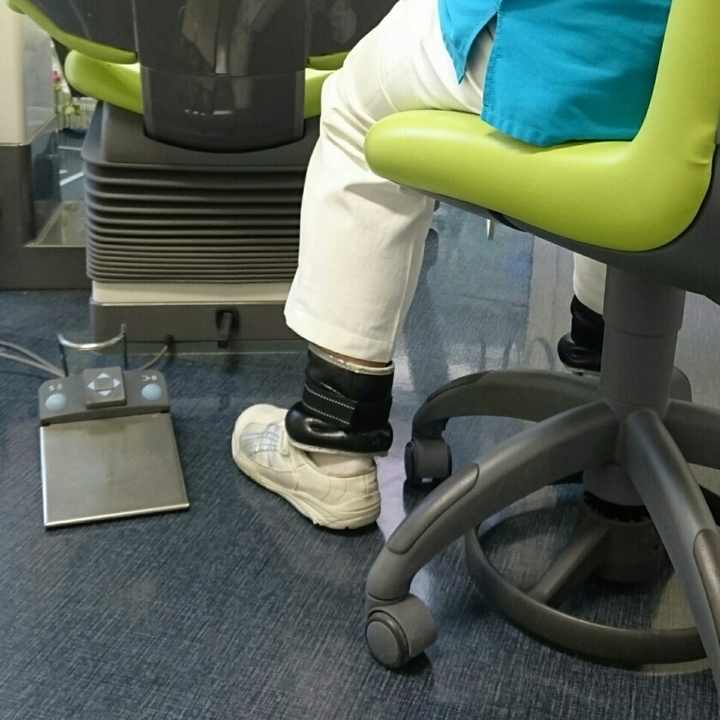 診療中も足に重りをつけて筋トレ\(;゚∇゚)/